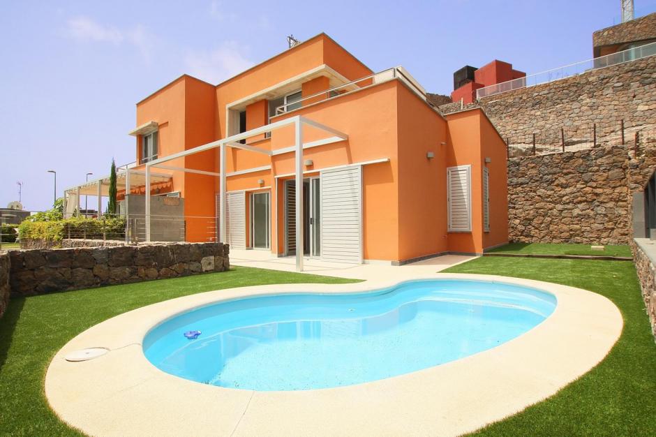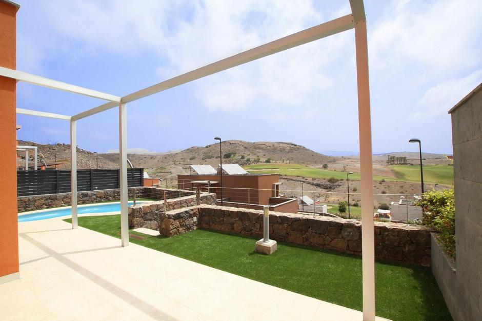 House for rent and for sale in Salobre Golf (Gran Canaria). 2 bedrooms, 2 bathrooms, living / dining room, american kitchen, storage room and balcony. Private terrace and garden with heated pool. This property that borders on the golf course has air conditioning and private parking area. The kitchen and bathrooms are furnished.