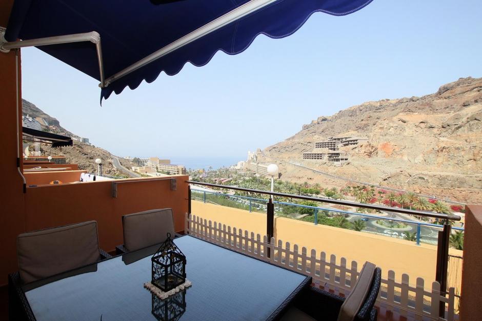 Apartment for rent in Taurito (Gran Canaria) with 1 bedroom, 1 bathroom, american kitchen and a balcony. Fully furnished with marvelous views to the canyon and the sea.