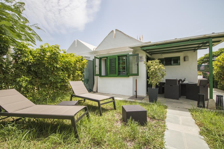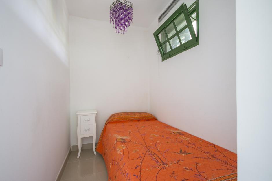 A wonderful 2 bedroom bungalow with a garden, in the quiet area of Campo International. New kitchen with an oven, cozy living room area, one master bedroom and one single bedroom, bathroom with washing machine. Terrace with dining table, garden with sun loungers and umbrella. Bungalow is fully equipped and furnished for an immediate move in. RIght in front, there is a large swimming pool. Utility bills, such as light and electricity, are included in the amount of 50 eur. Beautiful offer for a warm and peaceful winter stay on Gran Canaria.