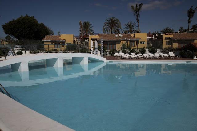 Bungalow in Maspalomas (Gran Canaria). 2 bedrooms, 1 bathroom, living room, American kitchen and storage room. This property is furnished and has air conditioning, garden and a terrace. The complex has communal pool.