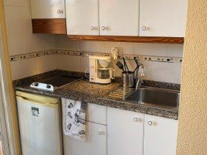 Nice studio for rent in Green Sea complex San Agustin. Well distributed, living room-kitchen-bedroom and large bathroom, large terrace with sea views. It has a built-in wardrobe, air conditioning and TV. The complex has 5 swimming pools and a tennis court. Located 5 minutes walk from Las Burras beach and 10 minutes from San Agustín Shopping Center. There is a bus stop next to the complex.