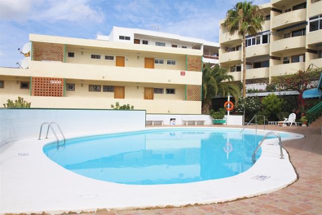 Charming 1 bedroom apartment in quiet area of San Agustin for sale and rent. It is fully furnished and has 1 bathroom, kitchen and a small balcony. There is a swimming pool, garden areas and a restaurant located in the same complex.