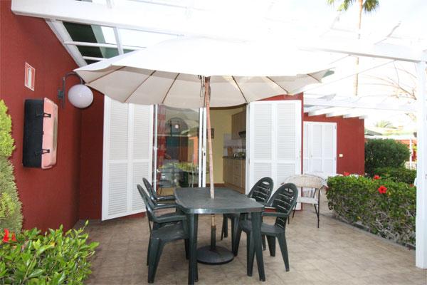 Bungalow in Maspalomas (Gran Canaria). 2 bedrooms, 1 bathroom, living / dining room, American Kitchen. The property has a lovely terrace and a communal pool. This is a very well maintained complex in a quiet area and near to Faro 2 shopping centre.