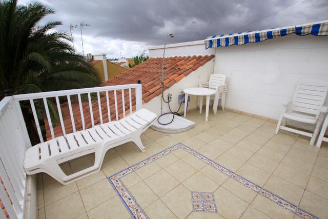 Duplex in Maspalomas (Gran Canaria). 3 bedrooms, 1 bathroom, 1 toilet, living / dining room, American kitchen. it has big roof terrace with BBQ and eletric sunshade, aircondition and Garage. It has a communal pool.