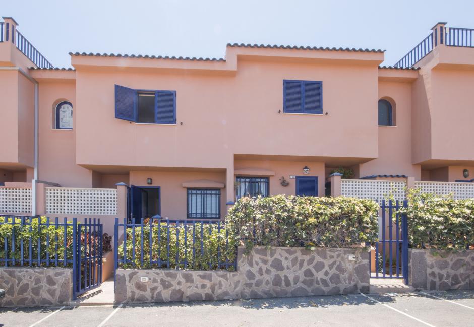 Triplex in Meloneras(Gran Canaria). 3 bedrooms, 2 bathrooms, 1 toilet, living/dinnig room with TV and airconditioned, seperate kitchen equipped. There is a terrace and spacious garden with direct access to the communal pool area. Street watched by security video camera.